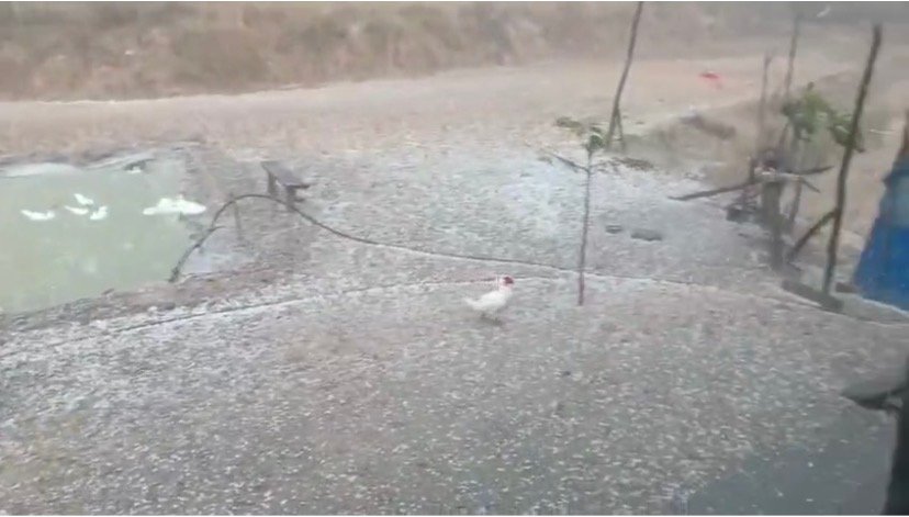 ယမန်နေ့ ညနေ ၆ :၂၀နာရီခန့်ကစပြီး ထန်တလန်မြို့နယ်၊ ဗိုင်လာမ်တောင်ကြောရှိ မွှန်လီပီကျေးရွာမှာ ယခုလို မိုးသီးကျခြင်းဖြစ်ပြီး နာရီဝတ်ခန့်အကြာ ရွာသွန်းခဲ့တာကြောင့် ရွာထဲရှိအိမ်အများစုကတော့ ခေါင်းမိုးပေါက်ပြဲကြတယ်လို့ ဒေသခံသတင်းအရင်းအမြစ်ကပြောပါတယ်။