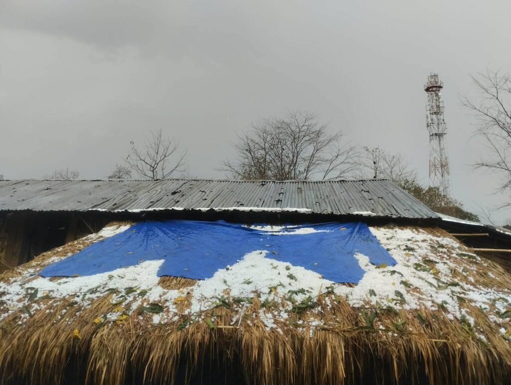 မတ်လ ၁၅ရက်နေ့ ညနေ ၂နာရီခွဲခန့်က အိန္ဒိယ၊ မဏိပူရ်ပြည်နယ်၊ အိန္ဒိယ-မြန်မာနယ်စပ် တနေရာမှာ မိုးသီးအဆမတန် ကျခဲ့လို့ စစ်ရှောင်ကလေးများ အခမဲ့ ဘော်ဒါဆောင်နဲ့ စစ်ရှောင်နေအိမ် ၁၉ လုံးအခုလိုအမိုးပေါက်ပြဲပျက်ဆီးသွားခဲ့တာဖြစ်ပါတယ်။